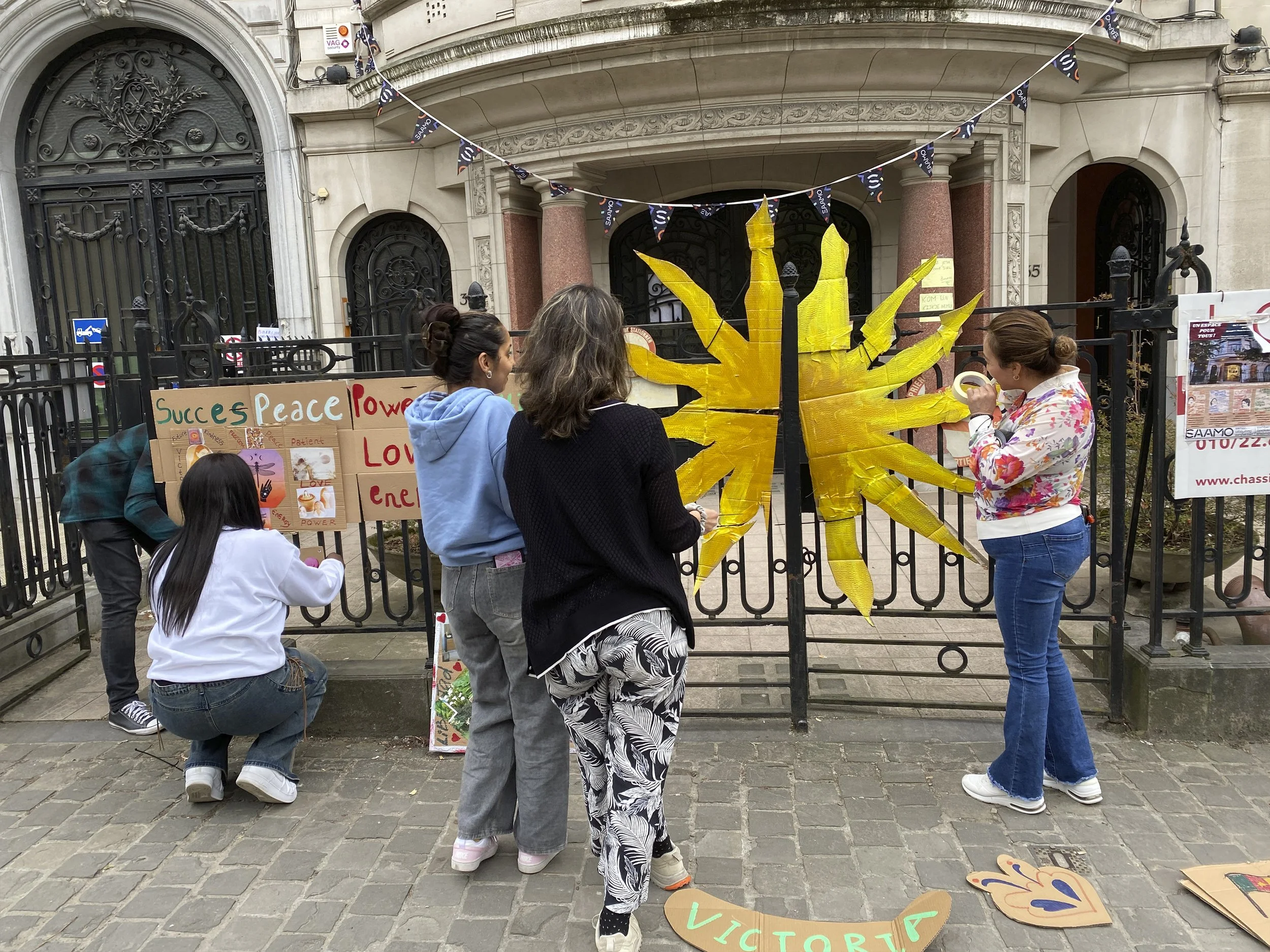 This is a participatory project at SAAMO’s hub for undocumented women entrepreneurs in Schaerbeek. Through a series of collaborative workshops, we co-created an art installation on the front gate using plexiglass as our main material.